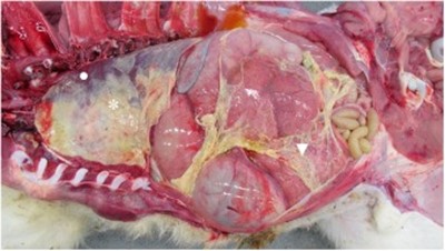 Le résultat, c’est une inflammation très hémorragique (Figure 2), et beaucoup d’inflammation (figure 1), associé à un choc inflammatoire qui va tuer l’animal si on ne gère pas le problème inflammatoire très tôt.