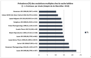 Mais quelle est la fréquence des ovulations multiples ? n. REFERENCE : Macmillan K et al. Update on Multiple Ovulations in Dairy Cattle. Animals 2018, 8, 62; doi:10.3390/ani8050062.