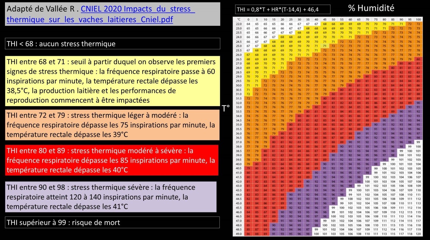 REFERENCE : Nardone A. et al. Effects of climate changes on animal production and sustainibility of livestock systems » publiée dans Livestock Science 2010, 130,57-69 et Gauly M et Ammer S Review: Challenges for dairy cow production systems arising from climate changes publiée dans Animal (2020), 14:S1, pp s196–s203 doi:10.1017/S1751731119003239.